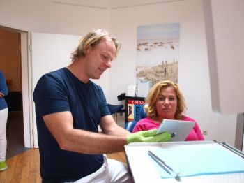 2. Zum Schutz der Wunde und für eine möglichst ungestörte erste Blutgerinnung beißen Sie bitte ca. 15 Minuten auf den eingelegten Tupfer. Danach ziehen Sie ihn vorsichtig zur Seite ab. Bei einem angelegten Druckverband richten Sie sich bitte nach unseren speziellen Empfehlungen. Sollte wider Erwarten eine Nachblutung auftreten, beißen erneut für eine halbe Stunde auf ein zusammengerolltes sauberes, angefeuchtetes Stofftaschentuch. Im Zweifelsfall rufen Sie bitte bei uns an.